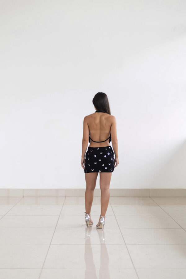 R$1.600,00Joia em forma de calça: confeccionada em crepe premium. Cada franja é cuidadosamente feita à mão, criando um desenho exclusivo que destaca a peça. Forrada.